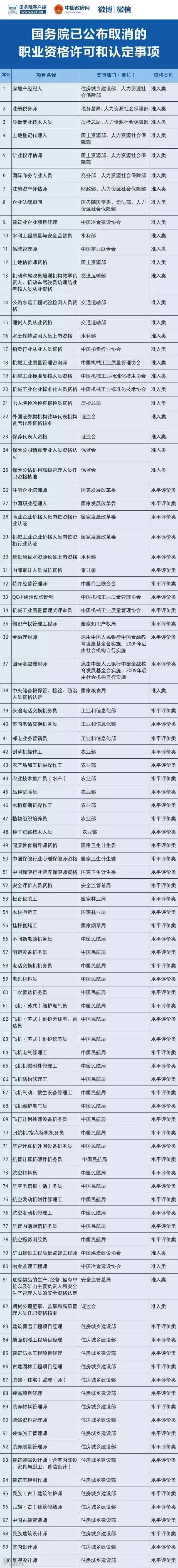 国务院已取消的职业资格!一图了解!