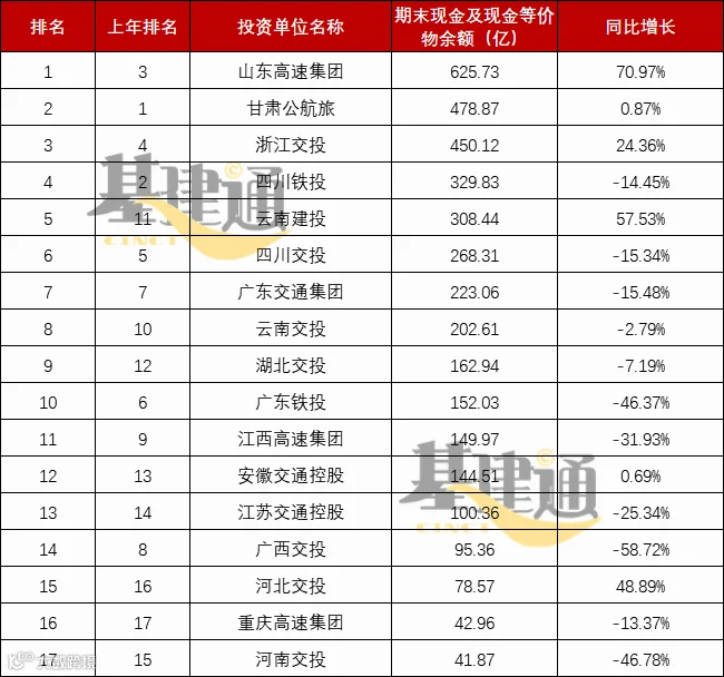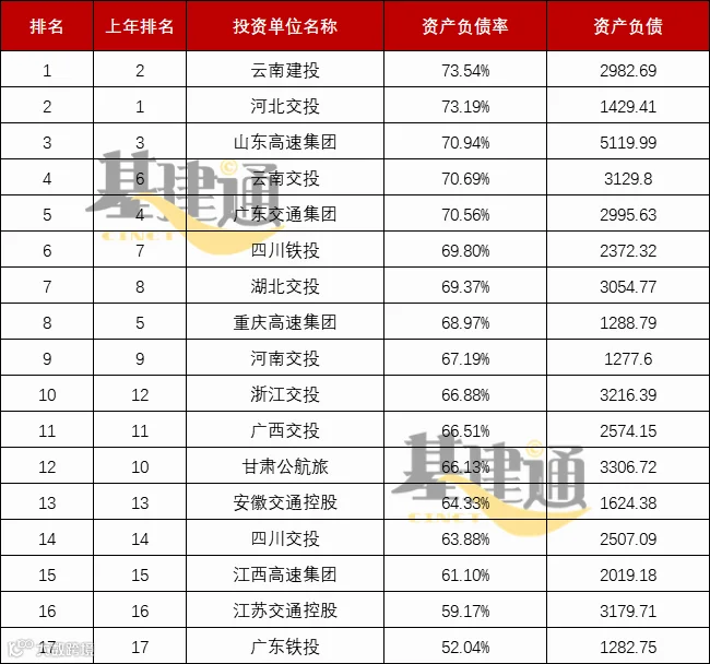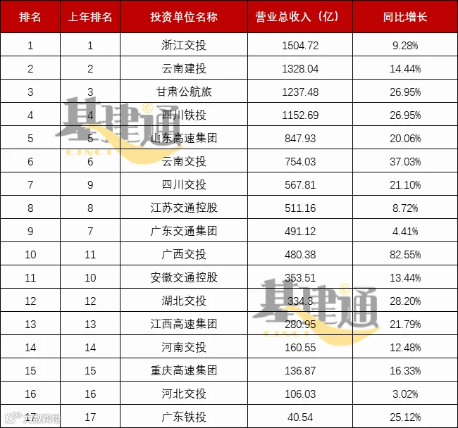 名次上升最快的是云南建投,从第11名上升到第5名,同时同比增长仅次于山东高速集团,同比增长57.53%。