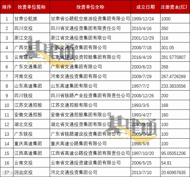 近期,总资产上千亿的省级交通投资企业年报基本都公布了, 跟往年一样,通哥将对他们进行全方位比较,本文涉及17家投资企业,他们的基本情况如下:
