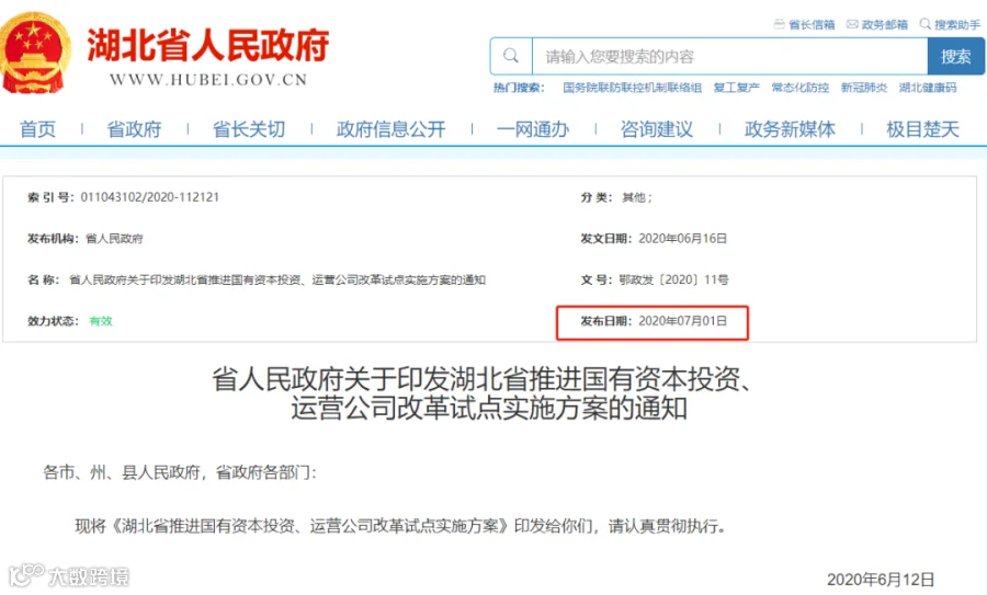 2020年7月1日,湖北省人民政府印发的《湖北省推进国有资本投资、运营公司改革试点实施方案的通知》中提到:省级层面,将湖北省交通投资集团有限公司改组为国有资本投资公司,将湖北省兴楚国有资产经营管理有限公司改组为国有资本运营公司,逐步将条件成熟的省属企业纳入试点范围。