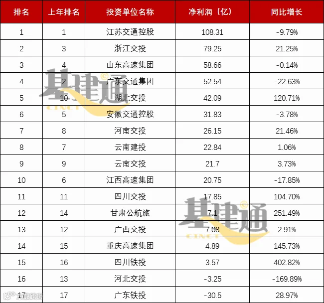 云南交投,同比增长最多,达21.07%,同时也是上升名次最多的,上升了3个名次。