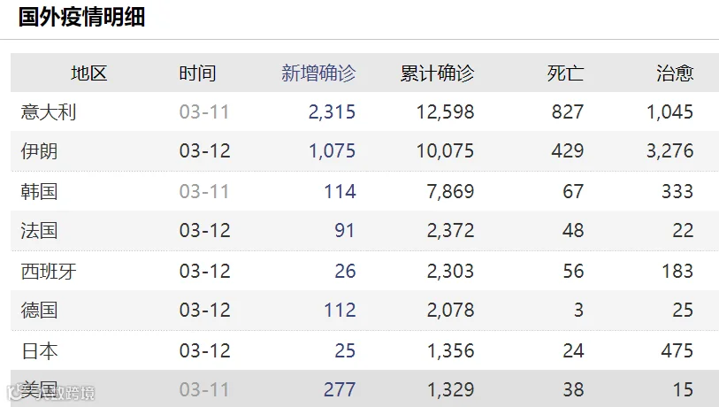 根据美国约翰斯·霍普金斯大学最新发布的各州汇总数据显示,截至美国东部时间11日23时(北京时间12日11时),美国累计新冠肺炎确诊病例已达1312例,死亡38例。死亡率居高不下。