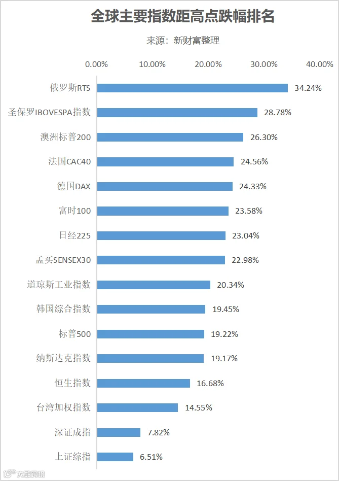 全球9大指数暴跌20%,多国陷入技术性熊市!