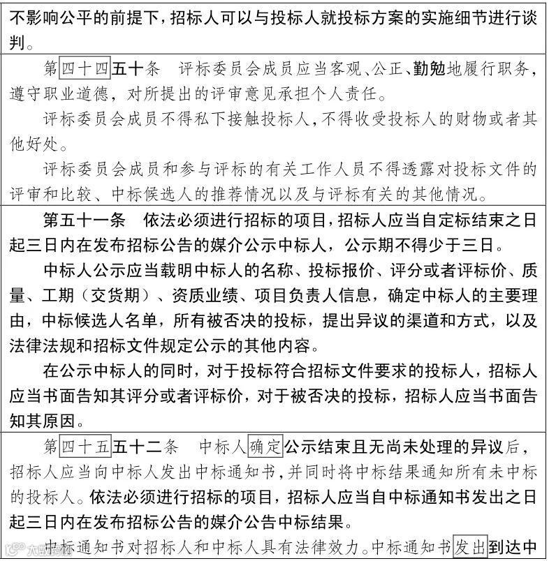 三、在确定中标人前,招标人不得与投标人就投标价格、投标方案等实质性内容进行谈判。