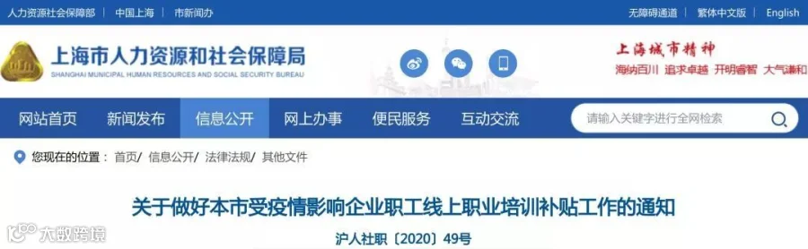 《关于做好本市受疫情影响企业职工线上职业培训补贴工作的通知》