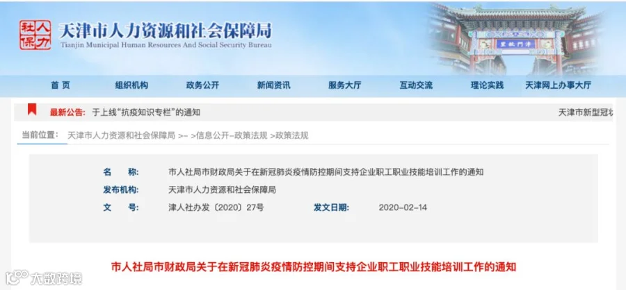 《关于应对新型冠状病毒感染肺炎疫情支持鼓励劳动者参与线上职业技能培训的通知》