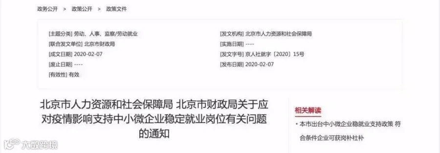 《关于应对疫情影响支持中小微企业稳定就业岗位有关问题的通知》