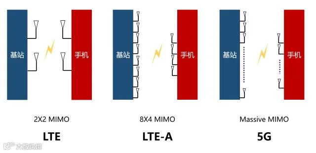 在LTE时代,我们就已经有MIMO了,但是天线数量并不算多,只能说是初级版的MIMO。