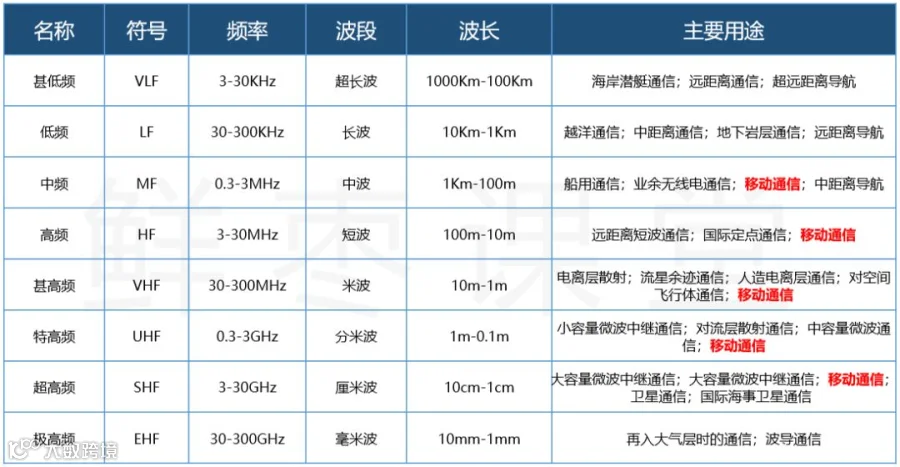 请大家注意上面图中的红色字体。一直以来,我们主要是用中频~超高频进行手机通信的。