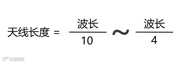 根据天线特性,天线长度应与波长成正比,大约在1/10~1/4之间。