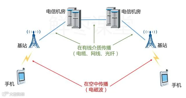 我和你打电话,信息数据要么在空中传播(看不见、摸不着),要么在实物上传播(看得见、摸得着)。