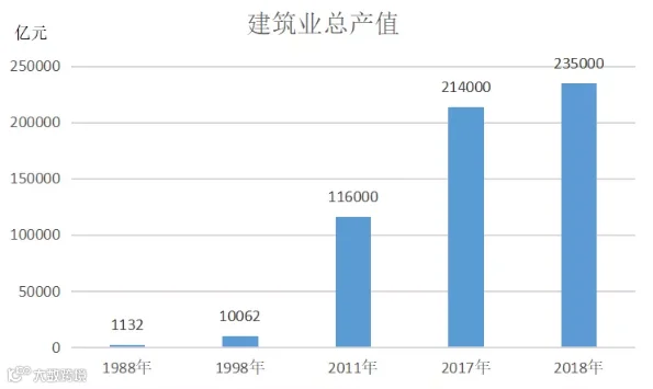 2019全年,我国建筑业总产值248446亿元,同比增长5.7%,2018年建筑业总产值约235000亿元;全国建筑业房屋建筑施工面积144.2亿平方米,同比增长2.3%。