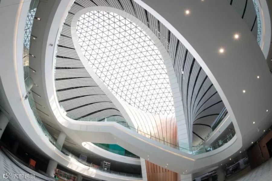 举个小例子:比如整个机场屋顶上面的立体科技投影,也就是屋顶的8000多块巨型玻璃;这每一块玻璃都是独一无二的,因为每一根巨型钢材和球形钢材节点连接处;三维坐标都是不同的;这也意味着这8000多块玻璃,每一个都是互不相同的。。。
