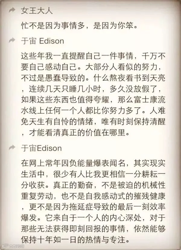 所以,希望每个人在创业之前,都能够重视对战略的思考,并勤于规划;而非只是在战术上的勤奋。创业初期,战术上的努力也是非常重要的,否则就变成了空想和空谈,只是要注重好时间的分配。