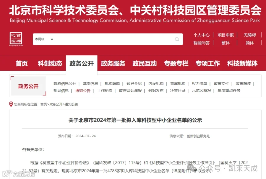 振奋人心!北京凯莱天成医药科技有限公司(以下简称“凯莱天成”)凭借强大的科技创新实力,成功入围北京市 2024 年第一批拟入库科技型中小企业名单!