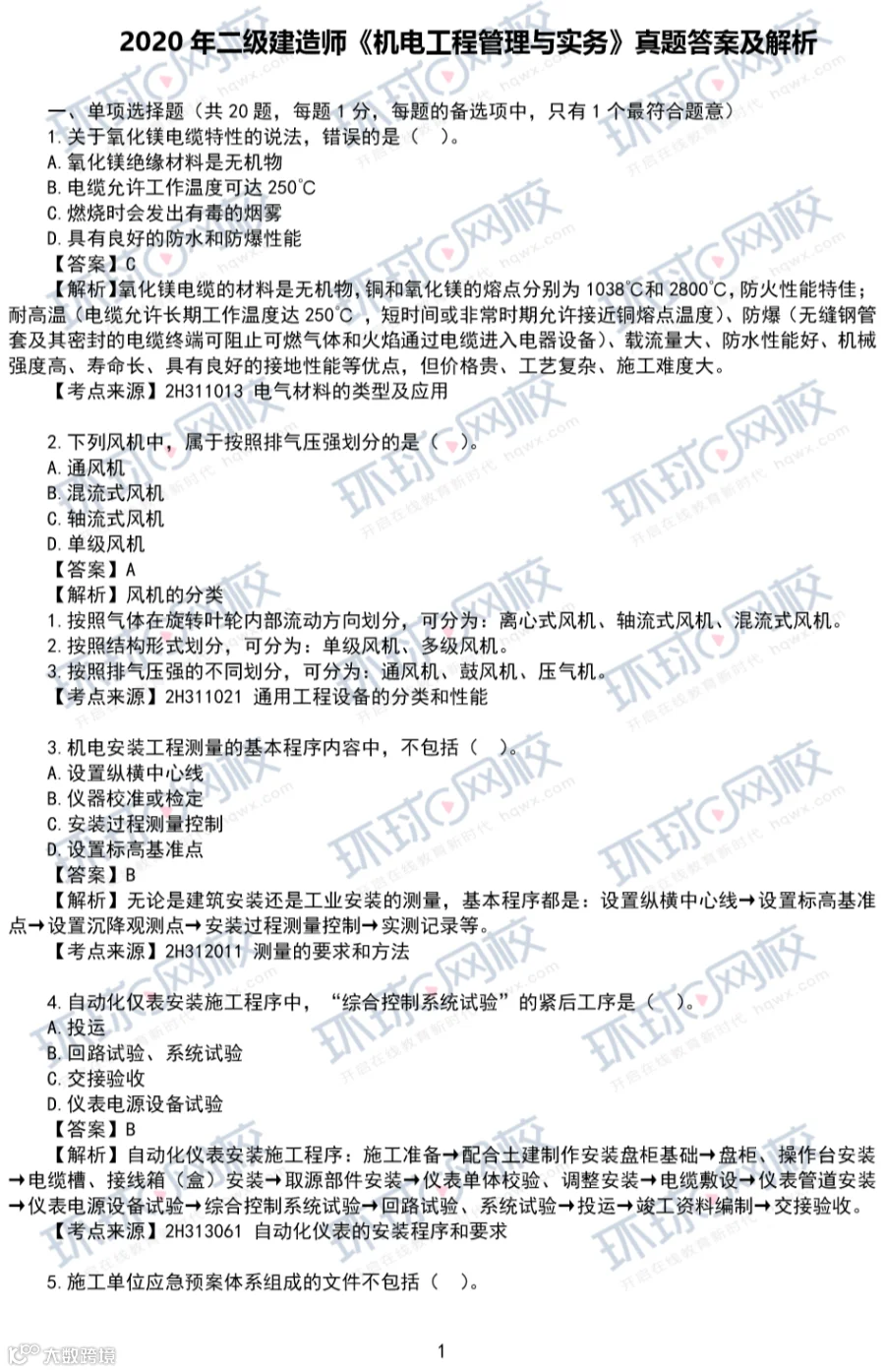 2020年机电真题答案