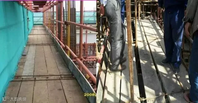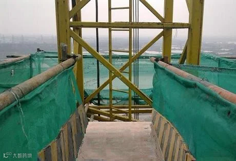 双层防护的错误做法:双层防护没有采用硬封闭,采用竹竿代替10mm厚胶合板。