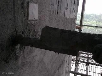 脚手架预埋连墙件错误做法:预埋件安装在结构梁面上,给外墙施工留下渗漏隐患。