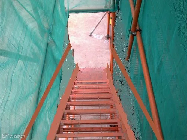 1)脚手架上下措施有两类:挂设爬梯和搭设“之”形步道或斜步道;