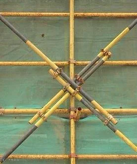 纵横向扫地杆:纵向扫地杆采用直角扣件固定在距底座下皮20cm处的立柱上,横向扫地杆则用直角扣件固定在紧靠纵向扫地杆下方的立柱上,通道出入口位置,有存在绊倒的危险时可不用安装扫地杆。