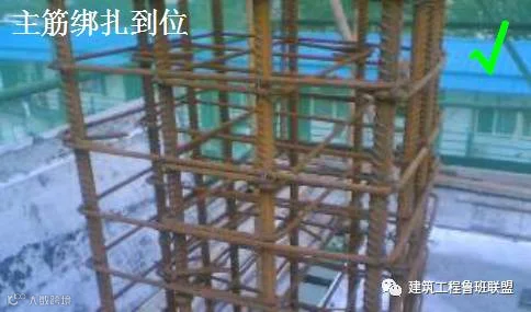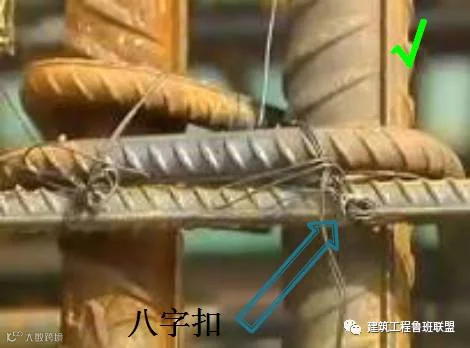 · 箍筋的接头应沿柱子立筋交错布置绑扎,箍筋与立筋要垂直,绑扣丝头应向里。绑扣相互间应成八字形。
