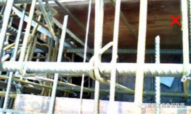 3)梁箍筋与主筋要垂直,不得歪斜。