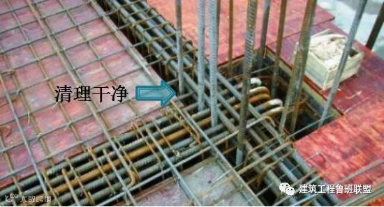 1)墙、柱根部钢筋上水泥浆清理干净。