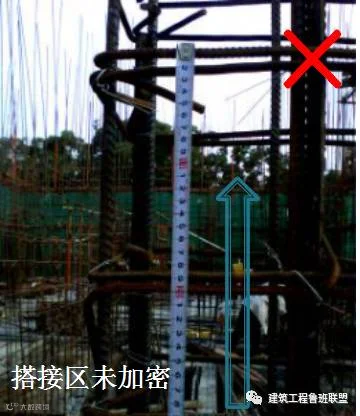 3)墙柱竖筋搭接要求:长度满足设计及规范,搭接处保证有三根水平筋。绑扎范围不少于三个扣。墙柱立筋50%错开,其错开距离不小于相邻接头中—中1.3倍搭接长度。搭接区加密。