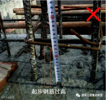 根部钢筋位置不符合要求,应用马凳垫起