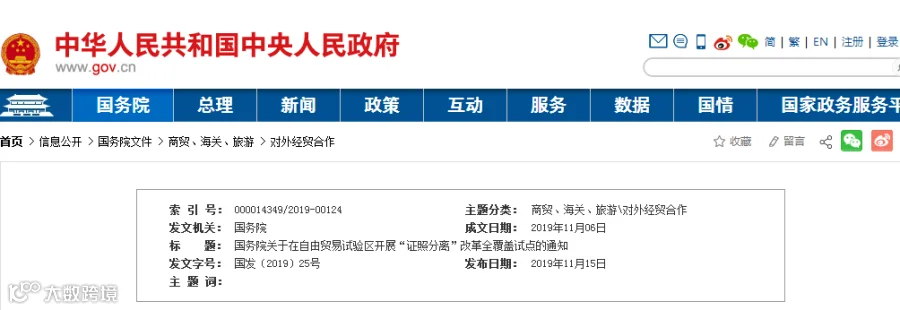 国务院关于在自由贸易试验区