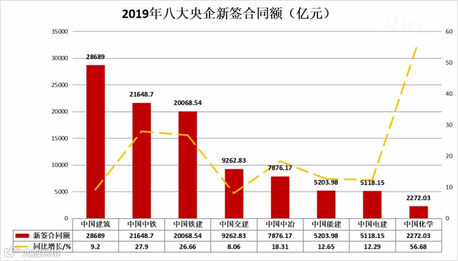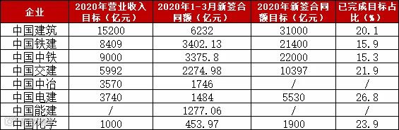 2020年订单争夺战已拉开帷幕,八大建筑央企一季度新签合同额总计达2万亿。