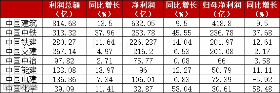 整体来看,八家央企此三项利润数据比去年同期增长。中国化学增幅均最大,净利润及归母净利润同比增长率高达58%。