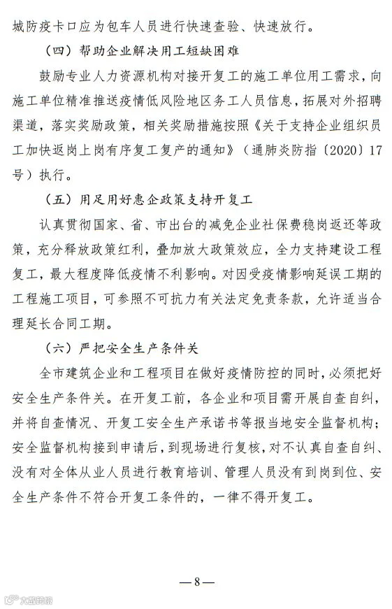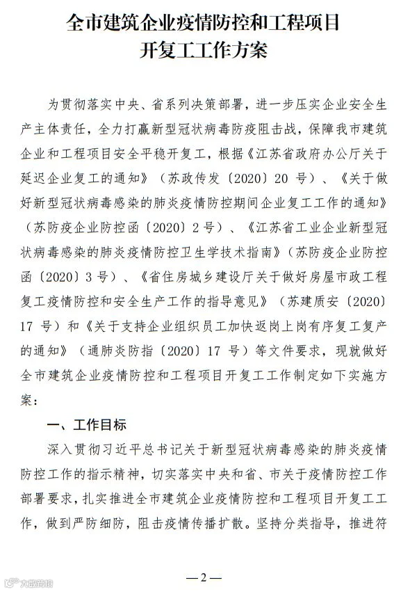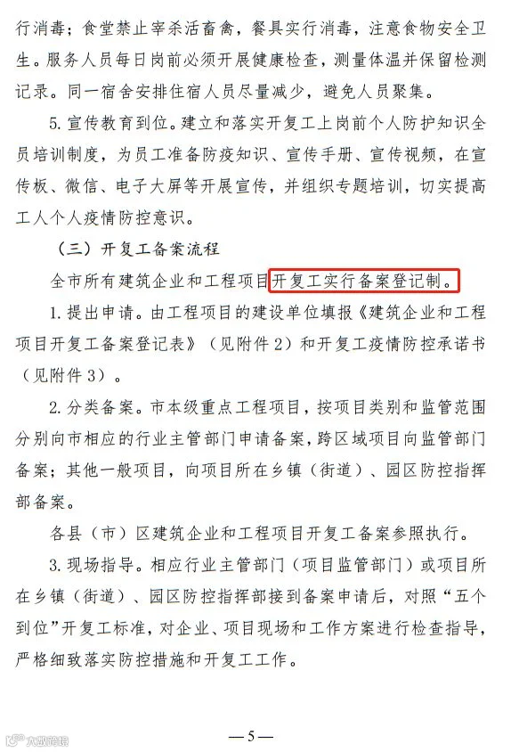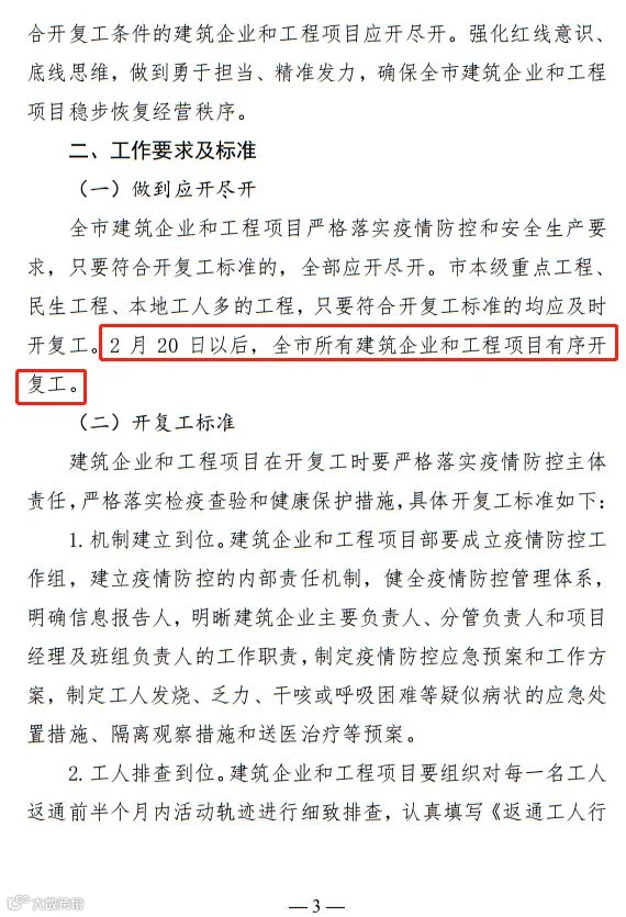 2月20日以后,全市所有建筑企业和工程项目有序开复工。