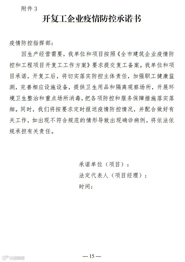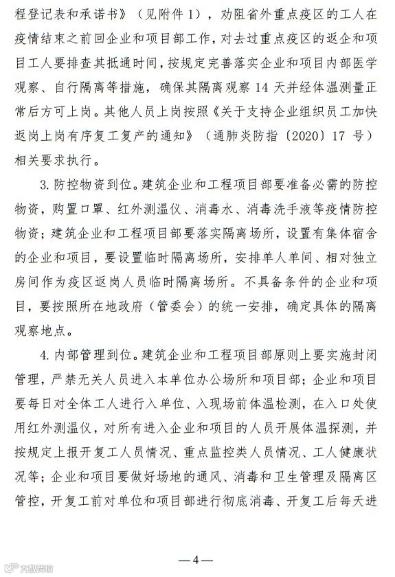 取消因疫情防控对各类企业、建设项目复工复产的批准手续,复工复产改为报备制。企业和项目建设单位只需提前24小时将疫情防控方案向当地报备。