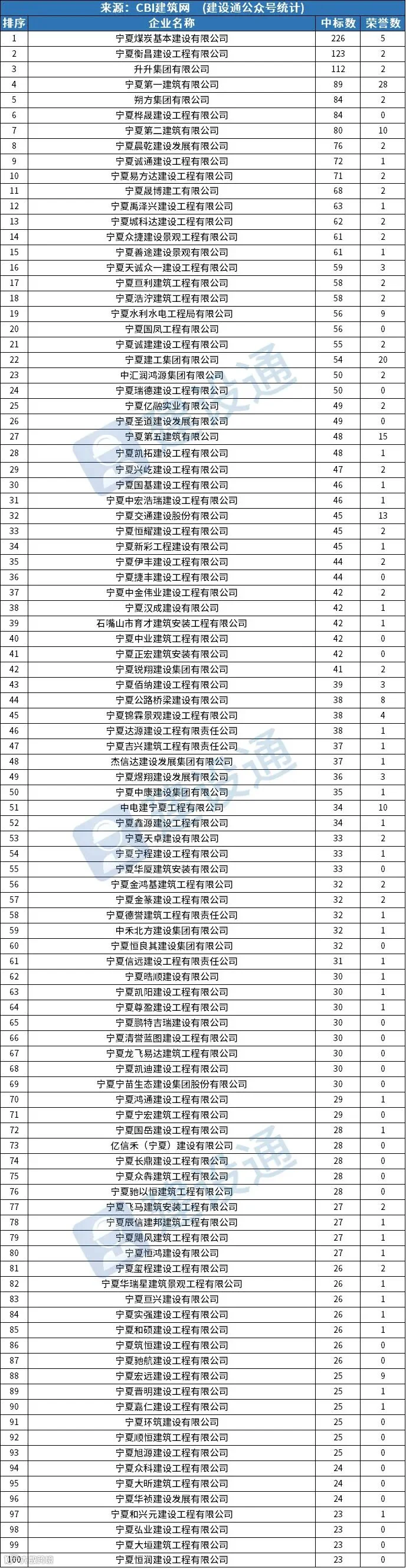 2024年宁夏建企中标100强