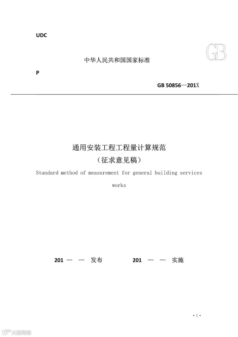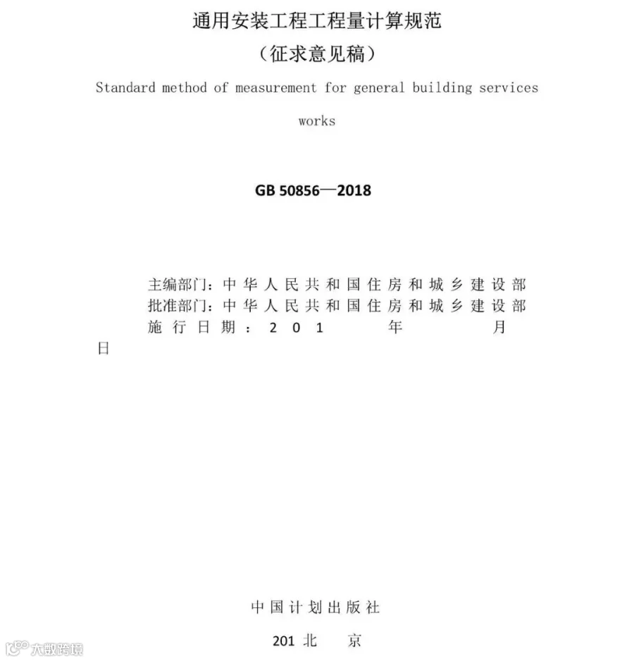 1.《通用安装工程工程量计算规范》(征求意见稿)