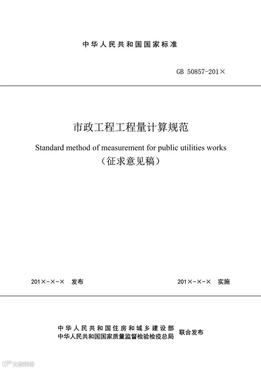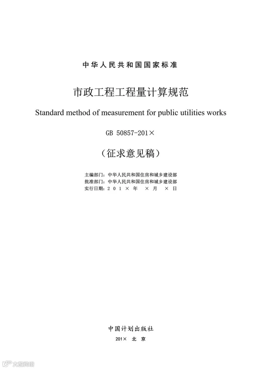 2.《市政工程工程量计算规范》(征求意见稿)