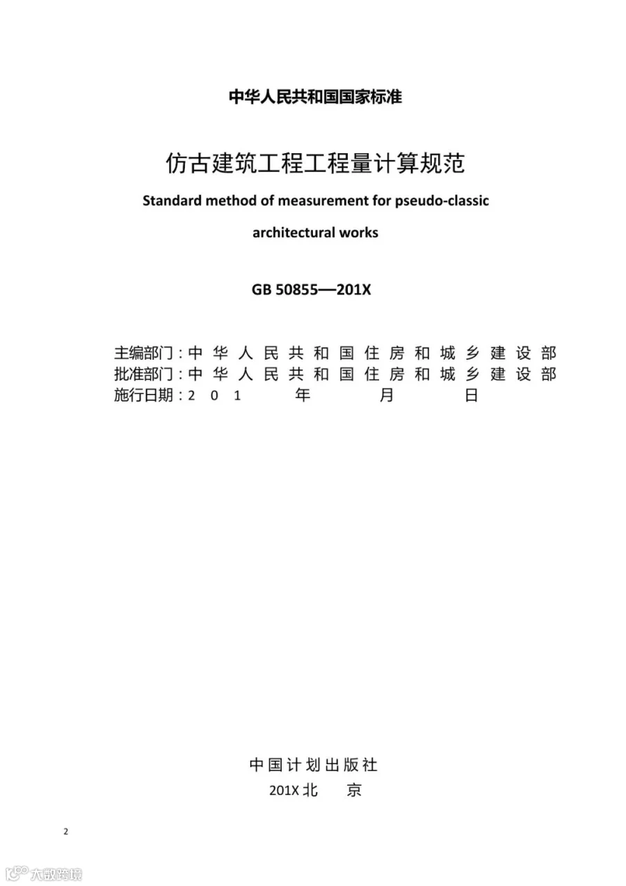 5.《仿古建筑工程工程量计算规范》(征求意见稿)