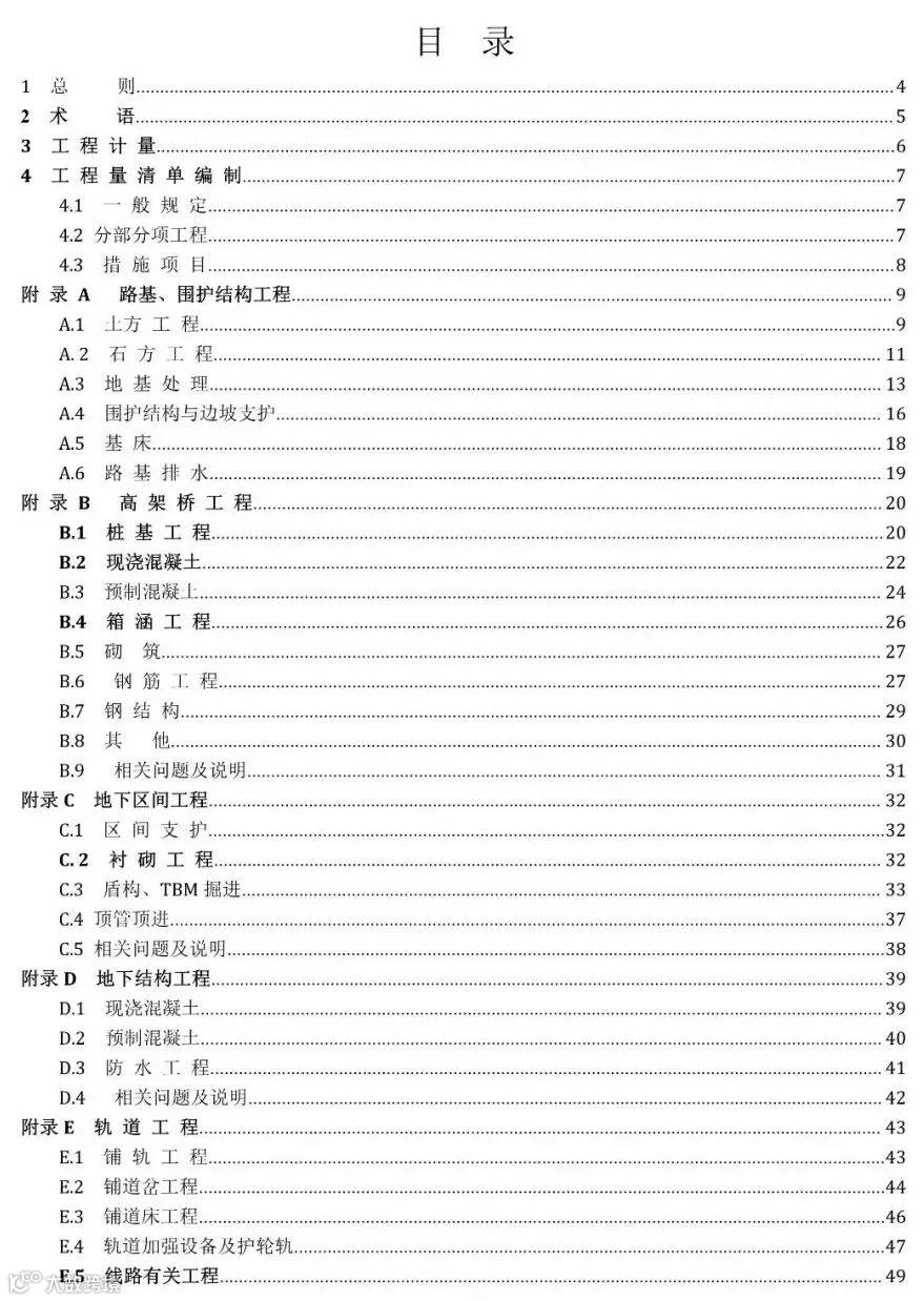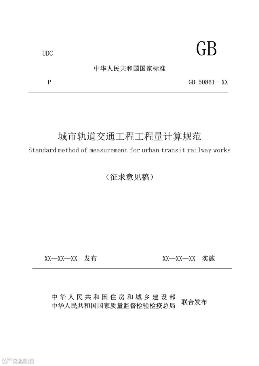 4.《城市轨道交通工程工程量计算规范》(征求意见稿)