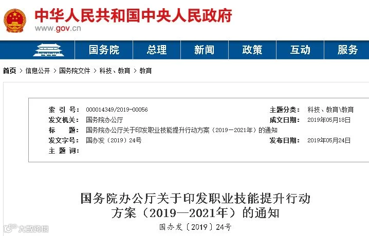 刚刚,国务院印发《职业技能提升行动方案(2019—2021年)》: