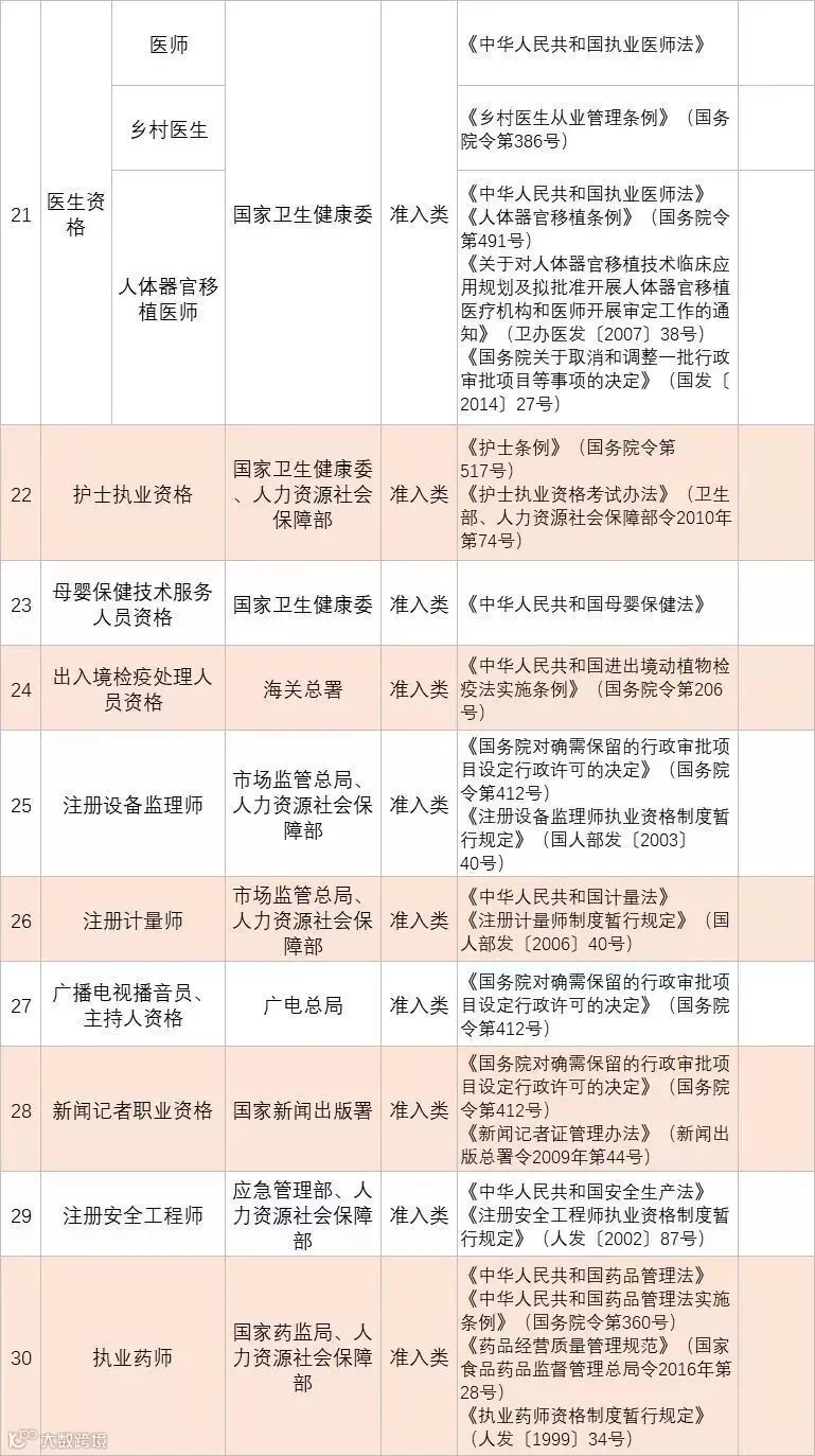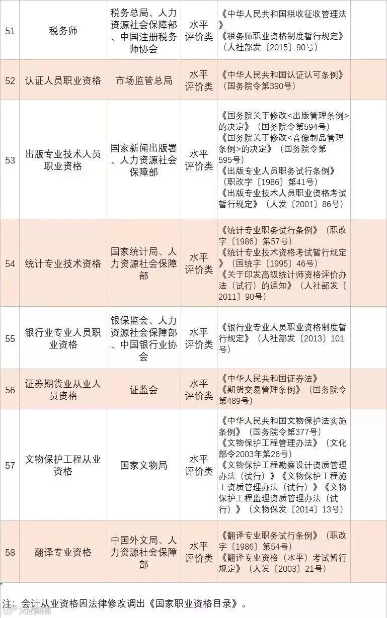 附:国家职业资格目录