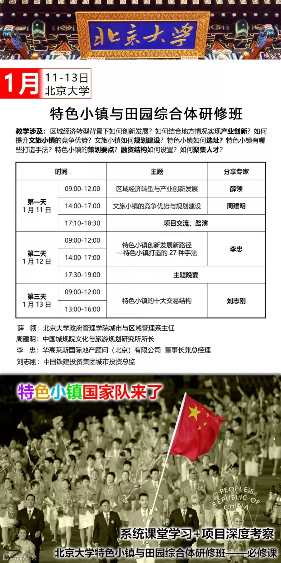 李忠老师的“特色小镇27种打造手法”演讲一度在业内产生广泛深刻的影响,内容被诸多公众号转载。1月12日李忠老师亲临北京大学开讲,面对面聆听的机会来了!