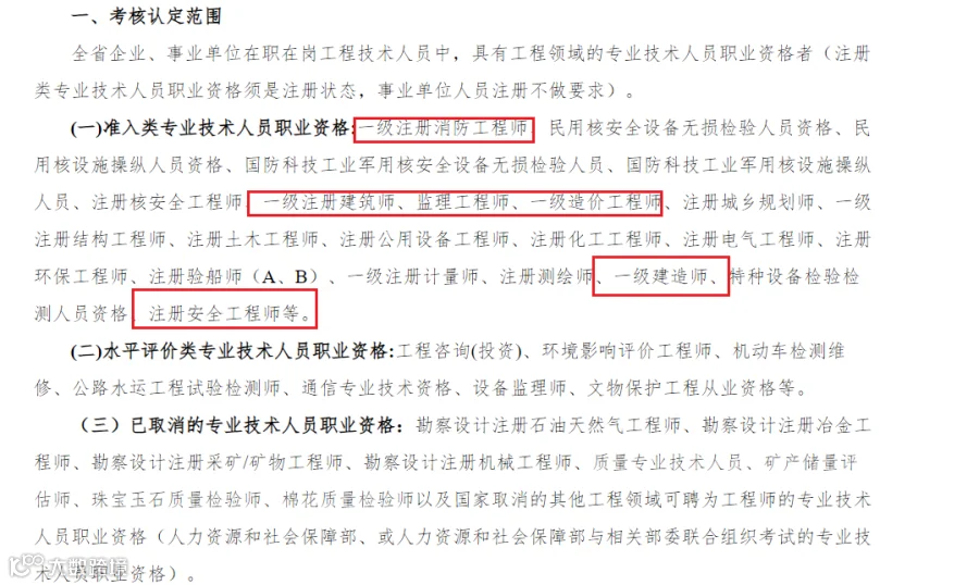 从官方的通知上来看,注册安全工程师、一级注册建筑师,一级造价工程师,一级注册结构工程师,一级建造师、监理工程师等均属于可以考核认定为副高的范畴。