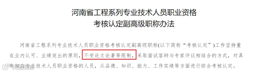 (三)面试答辩。申报人员须参加面试答辩,面试答辩重点考核申报人的专业理论、从业经历、工作实践情况和实际贡献,具体答辩办法参考《河南省工程系列高级专业技术职务任职资格评审答辩考核办法》(豫人社职称〔2016〕18号)。
