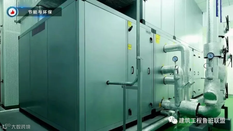 ✔ 采用遮阳格栅、太阳能集热器、LOW-E中空玻璃、多联机热回收新风机等多种节能材料设备
