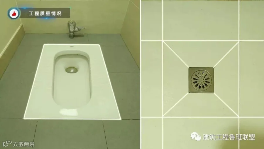 ✔ 卫生间三维对缝,洁具居中对称、套隔精细