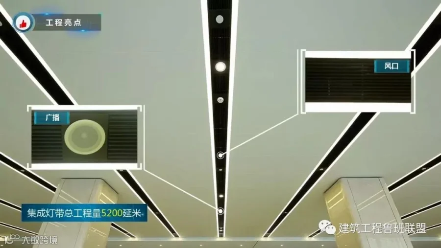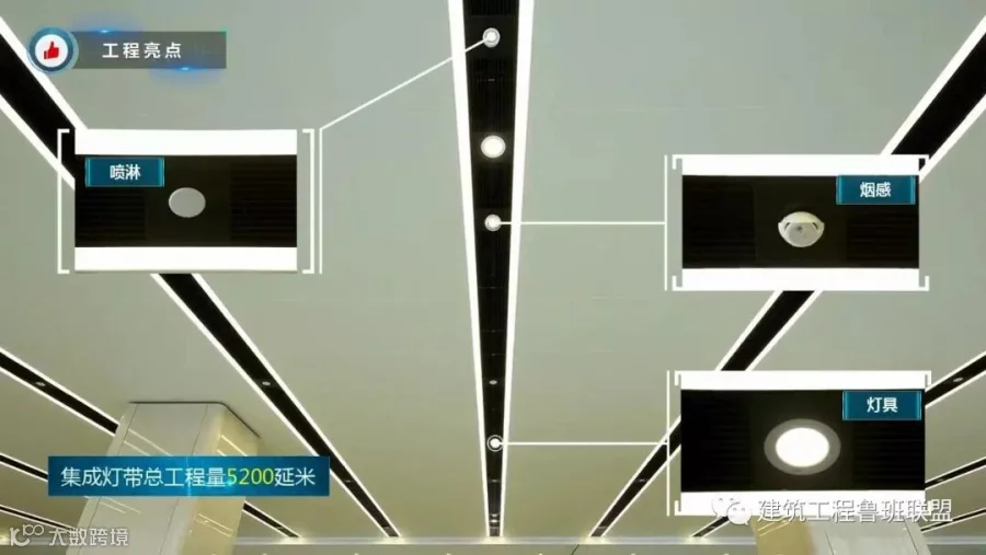 ✔ 集成灯带吊顶综合灯具、喷淋、烟感、广播、风口等末端,科学合理