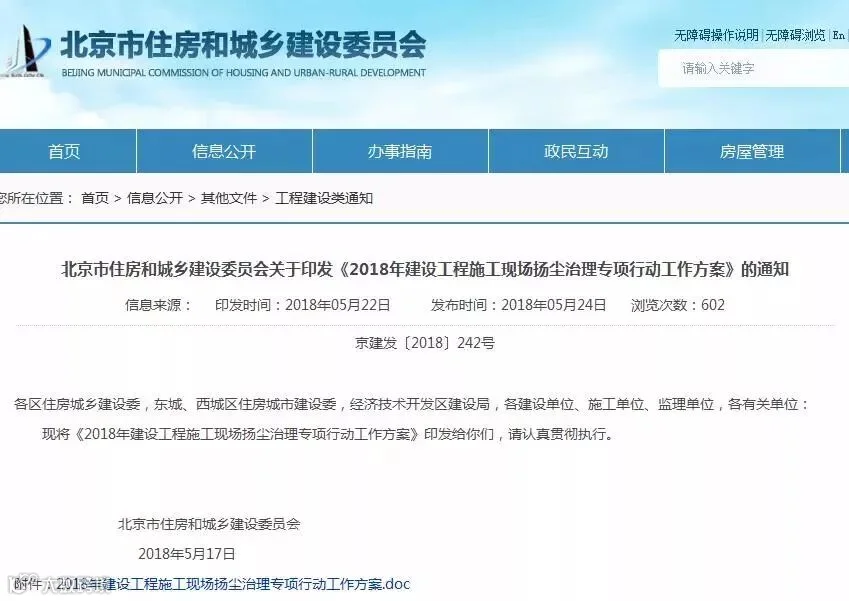 市住建委制定《2018年建设工程施工现场扬尘治理专项行动工作方案》