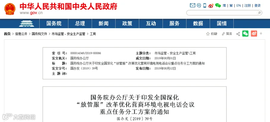 “放管服”改革优化营商环境电视电话会议