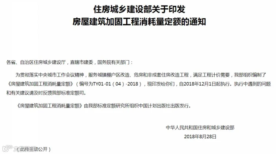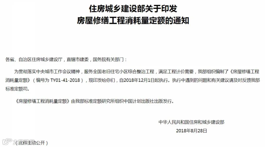 《房屋修缮工程消耗量定额》(编号为 TY01-41-2018)